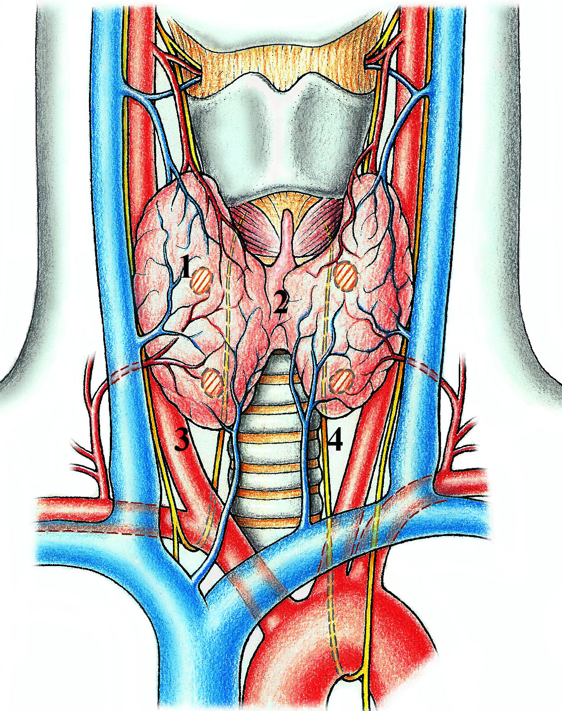 Nach einer totalen Entfernung der Schilddrüse (Thyreoidektomie) werden routinemässig das Serumkalzium und auch das Parathormon gemessen. Bei tiefen Werten wird Kalzium in Form von Brausetabletten verordnet. Falls das Parathormon im Serum nicht messbar ist kommt auch die Gabe von Vitamin-D-Präparaten zum Tragen.