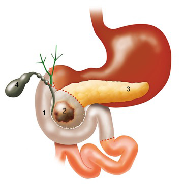 Im Bereich des Pankreaskopfes münden der Gallen- und der Pankreasgang in den Zwölffingerdarm. Bei einer Pankreaskopfresektion werden entsprechend neben dem Kopf der Bauchspeicheldrüse auch Anteile des Gallenganges, der Zwölffingerdarm, die Gallenblase sowie umgebende Lymphknoten entfernt. Zur Rekonstruktion werden Magen, Gallengang und das restliche Pankreas wieder an den Dünndarm genäht, sodass eine normale Nahrungsaufnahme und Verdauung wieder möglich ist.